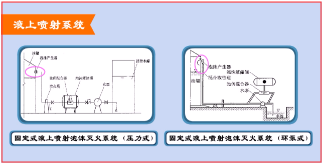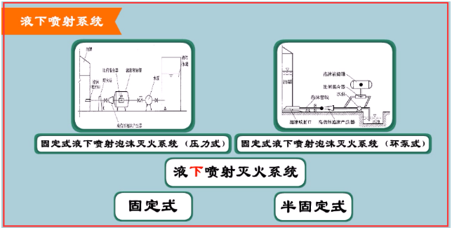與液下噴射滅火系統(tǒng)相比較,這種系統(tǒng)泡沫不易受油的污染,可以使用廉價的普通蛋白泡沫等優(yōu)點。它有固定式、半固定式、移動式三種應(yīng)用形式。